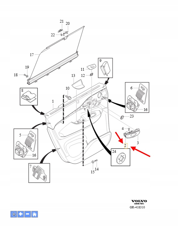 KLAMKA WEWNĘTRZNA DRZWI LEWY VOLVO XC90 2016- OEM/OE 31699902