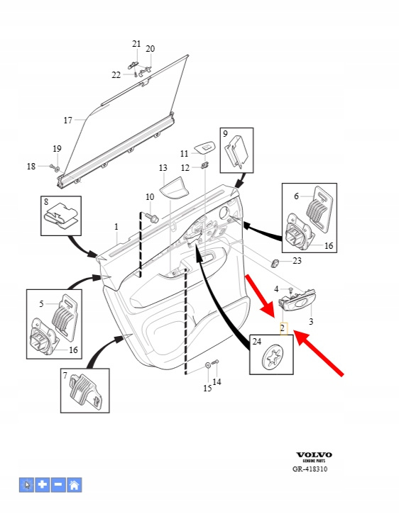 KLAMKA WEWNĘTRZNA DRZWI LEWY VOLVO XC90 2016- OEM/OE 31699903