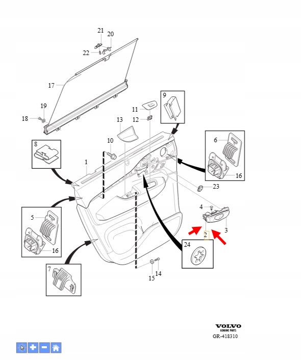 KLAMKA WEWNĘTRZNA DRZWI PRAWA VOLVO XC90 2016- OEM/OE 31699904
