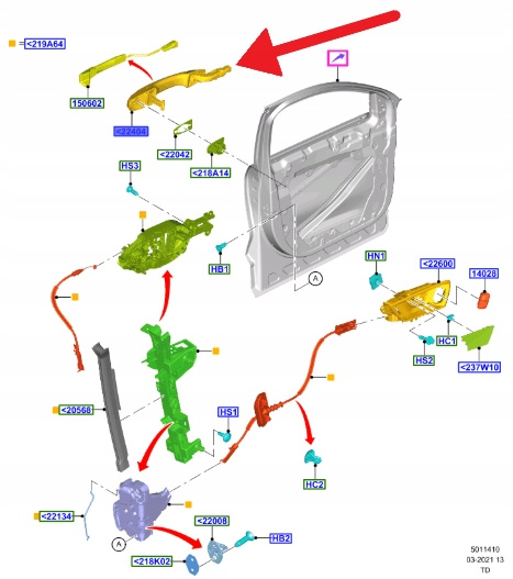 KLAMKA ZEWNĘTRZNA DRZWI PRZÓD FORD KUGA 2020- 2443758 _ LJ6B-S22404-ECPRAA