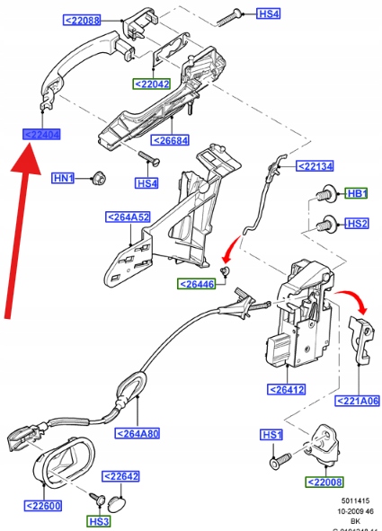 KLAMKA ZEWNĘTRZNA DRZWI TYŁ FUSION 2005- 2012 OE 1511456 _ 6S61-A22404-AC5