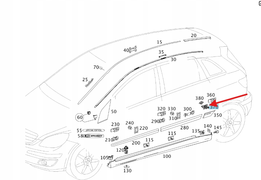 KLIPS MONTAŻ LISTWY BŁOTNIKA PRAWY MERCEDES B klasa W245 OE A0009916071