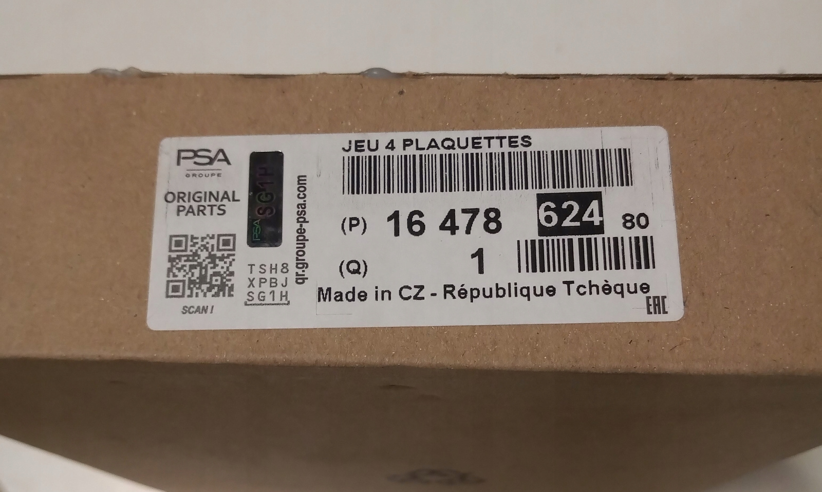 Klocki hamulcowe przednie Citroen Berlingo DS5 OE 1647862480