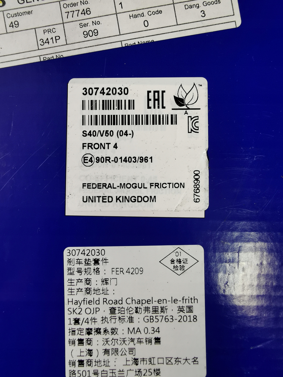 KLOCKI HAMULCOWE PRZÓD VOLVO S40 II 2004- V50 C30E