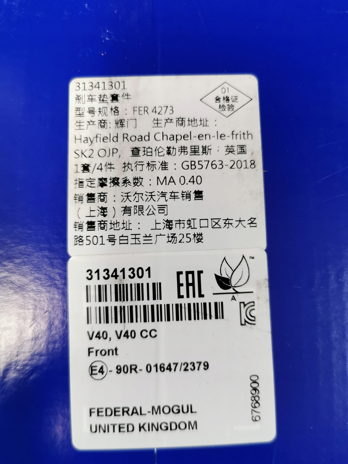 - KLOCKI HAMULCOWE PRZÓD VOLVO V40 II 2013- V40 CC