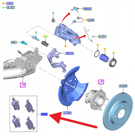 KLOCKI HAMULCOWE TYLNE FORD OE FIESTA 2017- 2458764 MEH1BC-2M008-AA