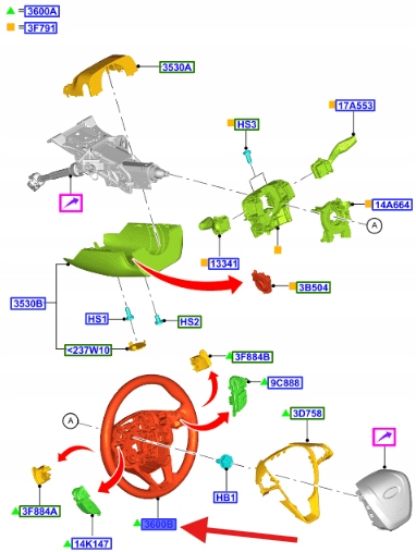 KOŁO KIEROWNICY FORD MONDEO MK5 2014- 1903638 _ DS73-3F830-NF3ZHE