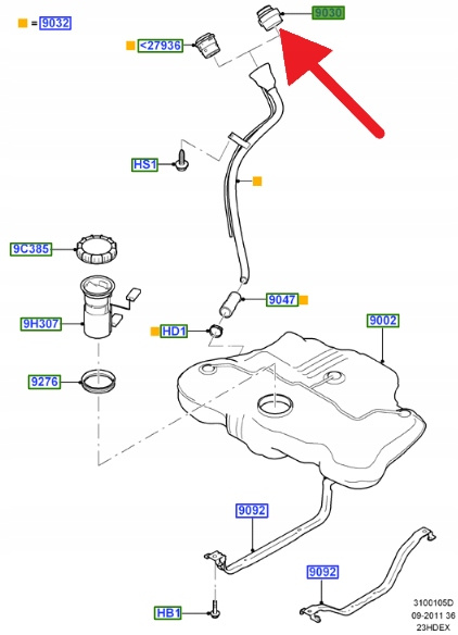 - KOREK WLEWU PALIWA FORD FOCUS S-MAX C-MAX 2003- 1589085 _ 6G91-9030-AD
