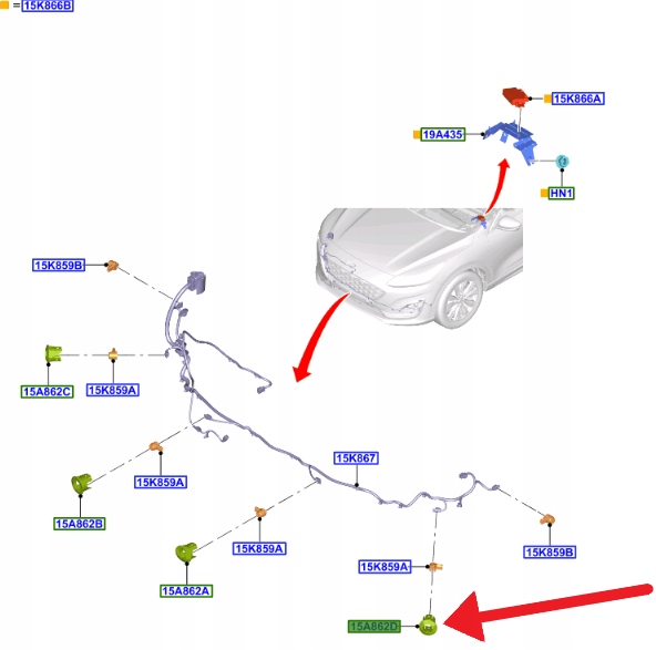 KOSZYK CZUJNIK PARKOWANIA LEWY PRZÓD KUGA 20- 2501160 _ LJ6T-15A863-RA5UAW