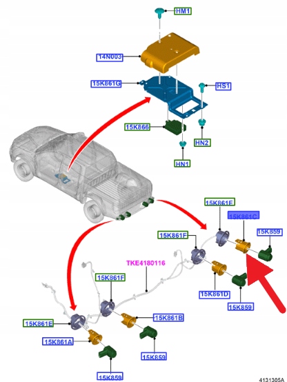 KOSZYK CZUJNIKA PARKOWANIA PRAWY TYŁ RANGER 2015- 1943148 _ EB3T-15K870-BBA