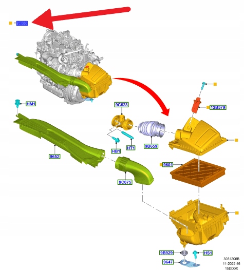 KPL OBUDOWA FILTRA POWIETRZA 1.5 TDCI FORD FOCUS 18- 2214013 _ JX61-9600-BB