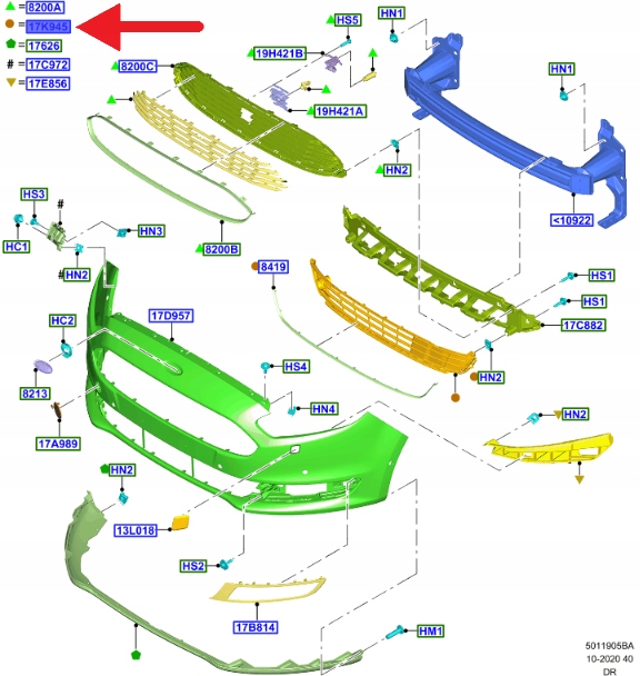 KRATKA DOLNA ZDERZAKA FORD GALAXY 2015- 1889236 _ EM2B-17A754-NB5YZ9