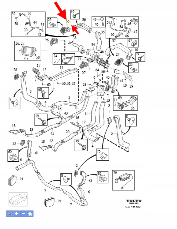 KRATKA NAWIEWU LEWY PRZÓD DESKI VOLVO XC90 2016- OEM/OE 32219345