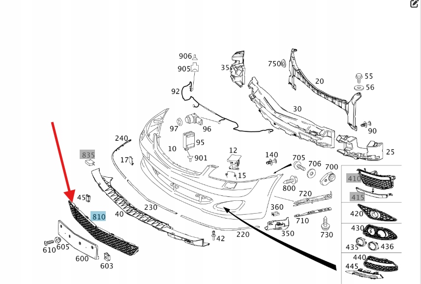 KRATKA ŚRODKOWA ATRAPA ZDERZAKA PRZÓD MERCEDES S klasa W221 OE A2218850453