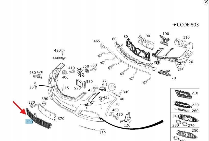 KRATKA ŚRODKOWA ZDERZAKA PRZÓD MERCEDES E klasa W212 OE A2128851253