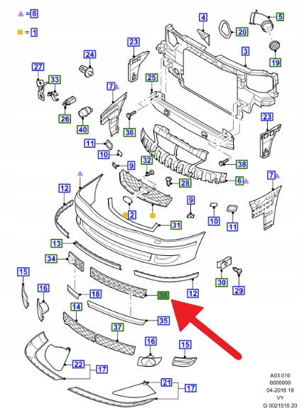 KRATKA ZDERZAKA DOLNY PRZÓD GALAXY 2003- 06 OE 1322552 _ 4M21-17K945-AAYYEI
