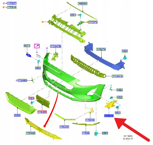 KRATKA ZDERZAKA LEWY PRZÓD FORD FOCUS 2018- 2022 2286255 _ JX7B-19953-A1D