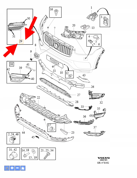 KRATKA ZDERZAKA LEWY PRZÓD VOLVO XC90 2016-2019 OEM/OE 31383821