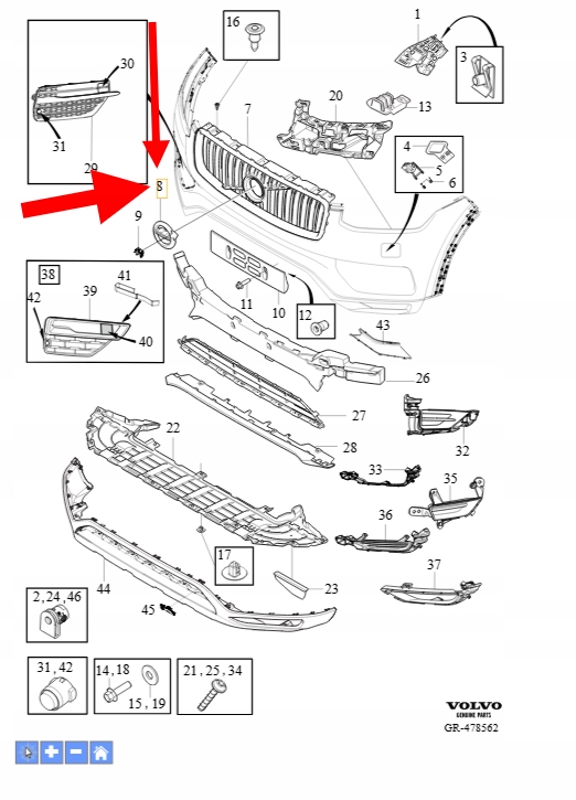 KRATKA ZDERZAKA PRAWY PRZÓD CZARNY VOLVO XC90 2016-2019 OEM/OE 31383622