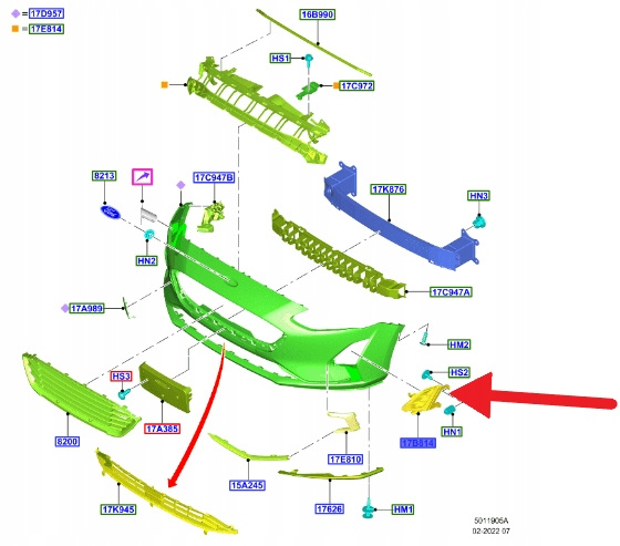 KRATKA ZDERZAKA PRAWY PRZÓD FORD FOCUS 2018- 2022 2286254 _ JX7B-19952-A1D