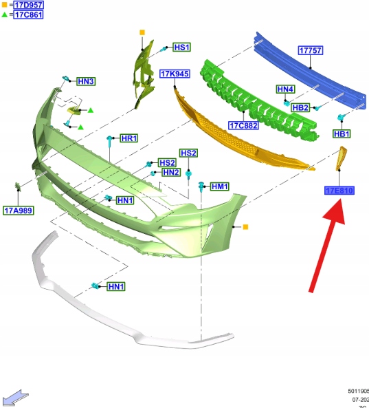 KRATKA ZDERZAKA PRZÓD LEWA FORD MUSTANG 2017- 2137574 _ JR3B-17B969-BA5YZ9