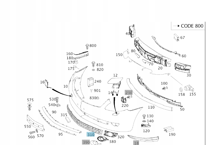 KRATKA ZDERZAKA PRZÓD MERCEDES W216