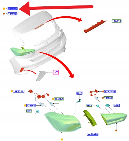 LAMPA PRAWY TYŁ W BŁOTNIK HATCHBACK FOCUS 2018- 2525712 _ JX7B-13404-CG
