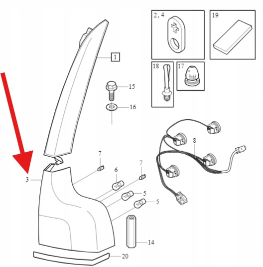 - LAMPA TYLNA LEWA VOLVO XC90 2003- OE 31213381