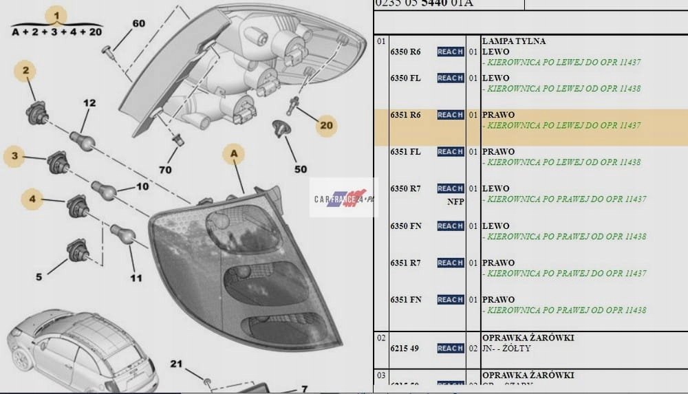 LAMPA TYLNA PRAWA CITROEN C3 PLURIEL OE 6351R6