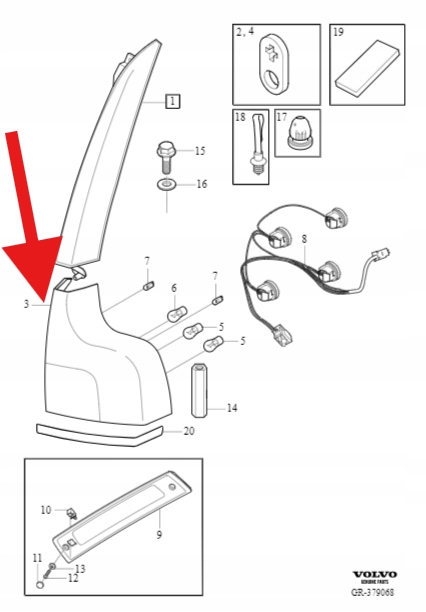 LAMPA TYLNA PRAWA VOLVO XC90 2007- 12 OE 31213382