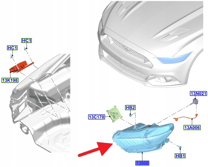 LAMPA XENON LEWY PRZÓD FORD MUSTANG 2015- 17 OE 5334498 _ FR3B-13035-BB
