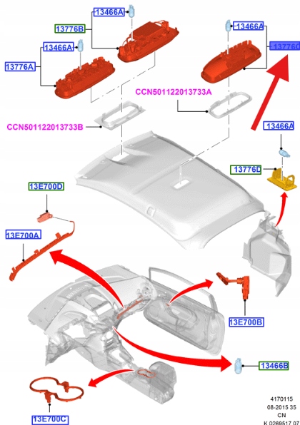 LAMPY WNĘTRZA PODSUFITKI FORD B-MAX FIESTA 2011- OE 1758122 _ 8A6A-13776-EA