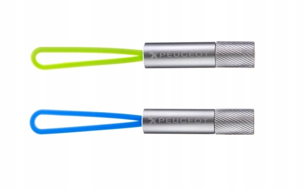 Do zaoferowania posiadamy dla Państwa latarkę kieszonkową z napisem PEUGEOT na obudowie. Elementem trzymającym latarkę jest sylikonowa zawieszka w dwóch kolorach, która nadaję się na przyczepienie latarki w dowolne miejsce.