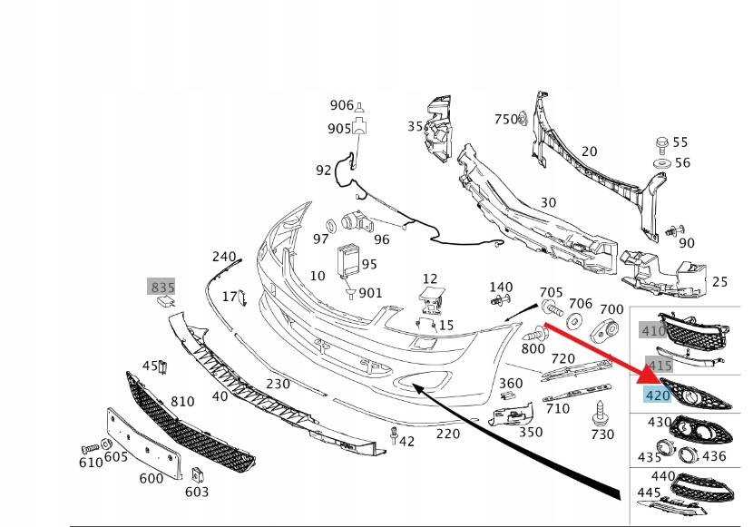 LEWA KRATKA ZAŚLEPKA ZDERZAKA PRZÓD MERCEDES S klasa W221 OE A2218850153