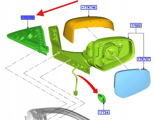 LEWA OBUDOWA TRÓJKĄT LUSTERKA TRANSIT COURIER 2454912 _ ET76-17E677-AH5JA6