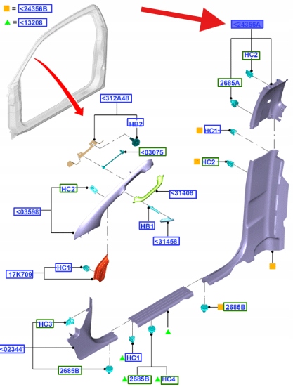 LEWA ZAŚLEPKA SŁUPKA B GÓRNA FORD RANGER 2011- OE 1915549 _ AB39-2524397-BF