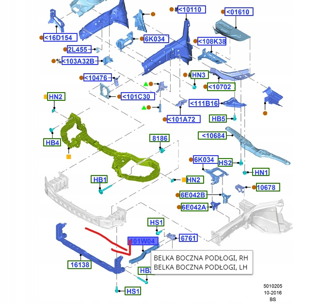 LEWE MOCOWANIE PASA PRZEDNIEGO FORD KUGA 2012- 1755178 _ CV61-101W05-AB