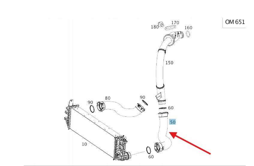 LEWY PRZEWÓD POWIETRZA TURBO MERCEDES SPRINTER W910 OE A9105280700