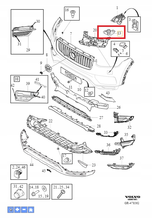 Lewy ślizg zderzaka przód Volvo XC90 OE 31353763