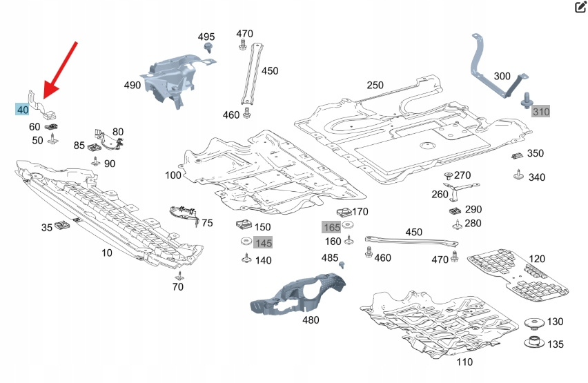 LEWY UCHWYT DOLNEJ OSŁONY SILNIKA MERCEDES GLC W253 OE A2535240040