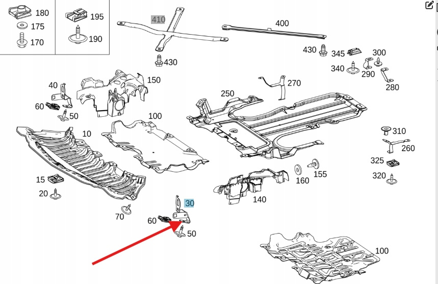 LEWY UCHWYT OSŁONY SILNIKA DOLNY MERCEDES C klasa W205 OE A2055240040