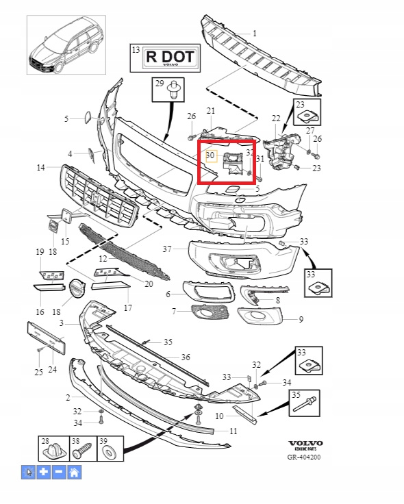 - Lewy wspornik zderzaka przód XC70 OE 30698146