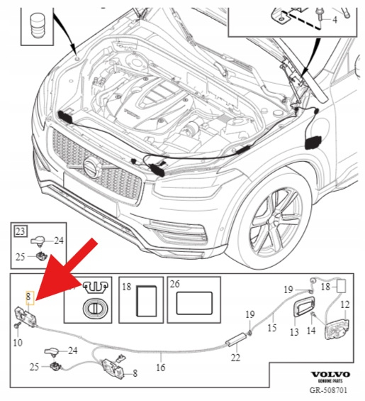 LEWY ZAMEK MASKI VOLVO XC90 2016- OE 32318456