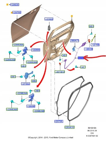LINKA OTWIERANIA DRZWI LEWY TYŁ FORD FOCUS Mk3 2194638 _ BM51-A247B51-AM
