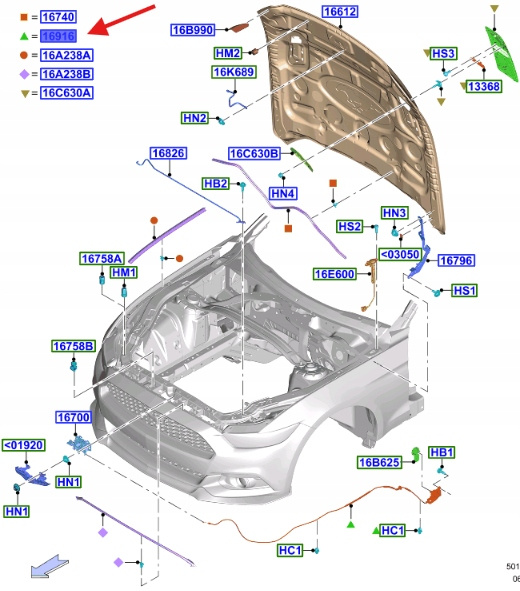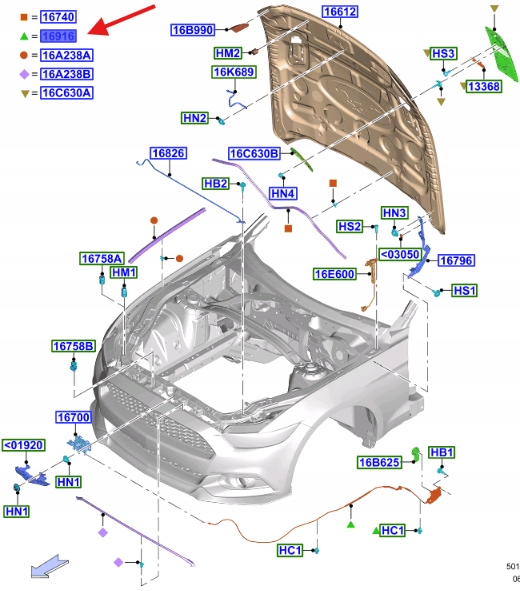 LINKA OTWIERANIA MASKI FORD MUSTANG MK6 2015- OE 2246450 _ FR3B-16B975-AF