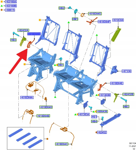 LINKA ZWALNIANIA OPARCIA FORD CUSTOM 2012- 2409058 _ BK21-600C48-ED