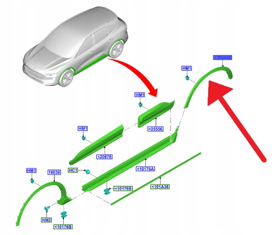 LISTWA BŁOTNIKA PRAWY TYŁ FORD KUGA 2020- 2526898 _ MV4B-S286D02-AA5YZ9