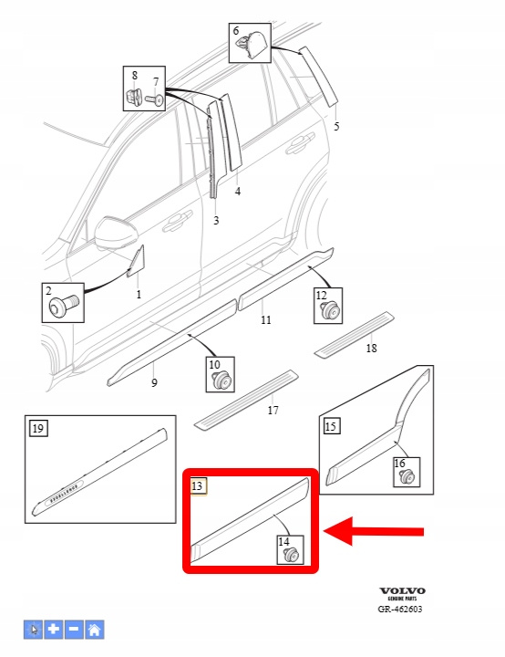 LISTWA BOCZNA DRZWI LEWY PRZÓD VOLVO XC90 2016- OEM/OE 39836865