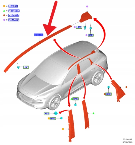 LISTWA DACHU PRAWA FORD KUGA ESCAPE 2020- 2701437 _ LJ6B-S50462-AG5YZ9