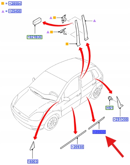 LISTWA DRZWI LEWY TYŁ FIESTA 2005- OE 1536982 _ 6S61-A25533-AF55MW
